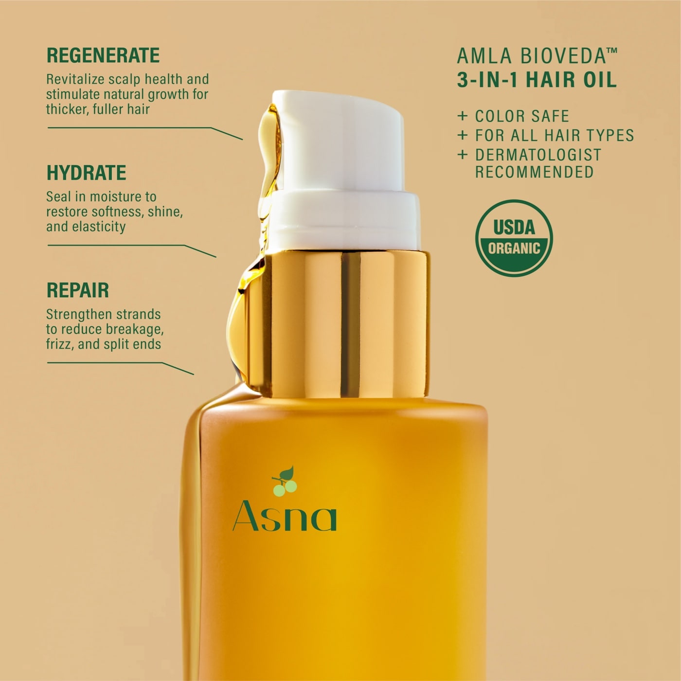 USDA Certified Organic, this clean formula uses cold extraction to preserve the potency of nutrient-rich botanicals, combining the intelligence of Ayurveda with modern science for visibly healthier hair and scalp | Amla, the Indian secret to radiant hair. With over 20× the Vitamin C of an orange, this antioxidant- and polyphenol-rich superfruit helps defend against oxidative stress, enhances collagen production, and supports follicular health for thicker-looking density while helping delay the look of premature greying. Fortified with vitamins A, E, and B-Complex (B1, B2, B3, B5, B7), it supports scalp vitality and healthy circulation to stimulate natural hair regeneration, refine texture, and help minimize shedding, leaving hair visibly vibrant and resilient. | Paired with Indian Jasmine and organic biomimetic lipids that mirror the scalp’s natural oils, it helps soothe irritation, support a balanced scalp microbiome, and seal in weightless moisture to smooth the cuticle, boost shine and elasticity, reduce frizz and breakage, and keep strands soft, strong, and beautifully manageable. | Vegan & cruelty-free—developed with integrity and efficacy—and always free from parabens, sulfates, silicones, mineral oil, petrolatum/paraffin, phthalates, PEGs, synthetic dyes, GMOs, microplastics, drying alcohols, and gluten.
